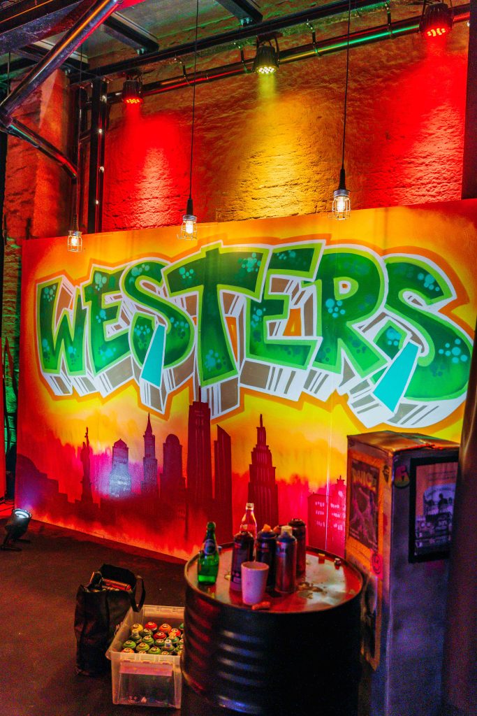 Before guests even entered the venue, they were welcomed by a live art performance, where a graffiti mural was created throughout the event.