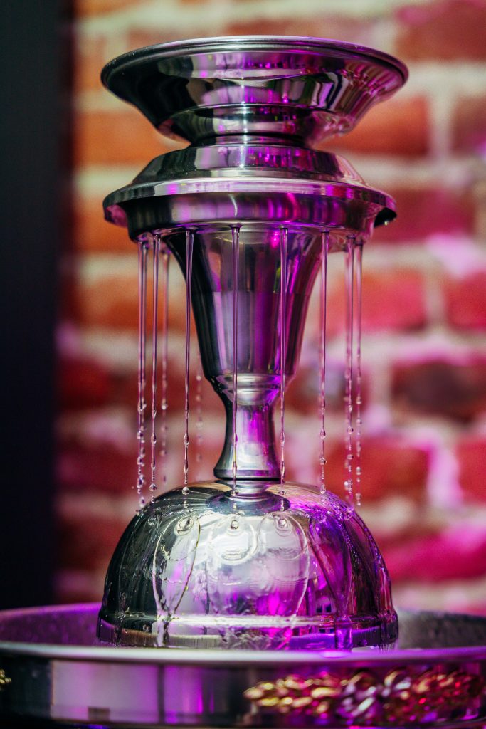 Through a portal, guests could then move into the Zen Room, an oasis of calm. Here they were greeted by the soothing sounds of water, cherry blossom trees, a wishing well, a water fountain, and beautiful flowing fabrics across the ceiling.
